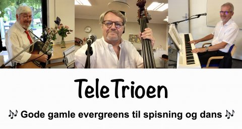 TeleTrioen tilbyder sig med musik og sang fra den danske og udenlandske sangskat af populærmusik til Ældre Sagens Lokalafdelinger. Vort ene repertoire spænder over en længere periode fra 1950erne til nu, og rummer derfor musik, som de fleste kender fra deres egen tid, f.eks. med kunstnere som Otto Brandenburg, John Mogensen, Shu-bi-dua, Bent Fabricius-Bjerre, Kim Larsen m.fl. Derfor lægger vi også op til vort publikum om at synge med, ja for den sags skyld også op til en dans, hvis det er det, man vil. Den anden del af vort repertoire henter vi især i den amerikanske sangbog. Sange som er blevet spillet igen og igen, ikke mindst i jazzen. Dem kan vi ikke undvære selv, og vi spiller derfor også gerne numre som f.eks. All of Me, When You Are Smiling, Dream a Little Dream of Me m.fl. til nydelse og måske dans. Vi plukker desuden lidt i den franske sangskat. TeleTrioen - vi er tre seniorer - tre erfarne musikere på piano, bas og guitar - med lang tids samspil bag os. Vi sørger for at skabe stemning omkring os, fordi musikken skaber glæde.